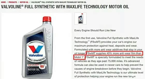 直接将美孚拉黑做对比(美国广告可以对比,只要检测出来你确实比别人牛)