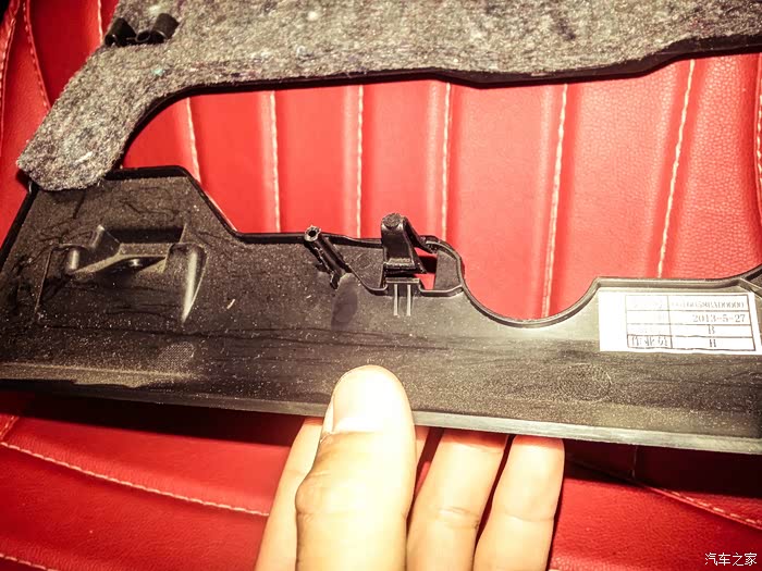 这个护板就拿下来了,在这里大家可以清晰看到中间那个卡扣了。