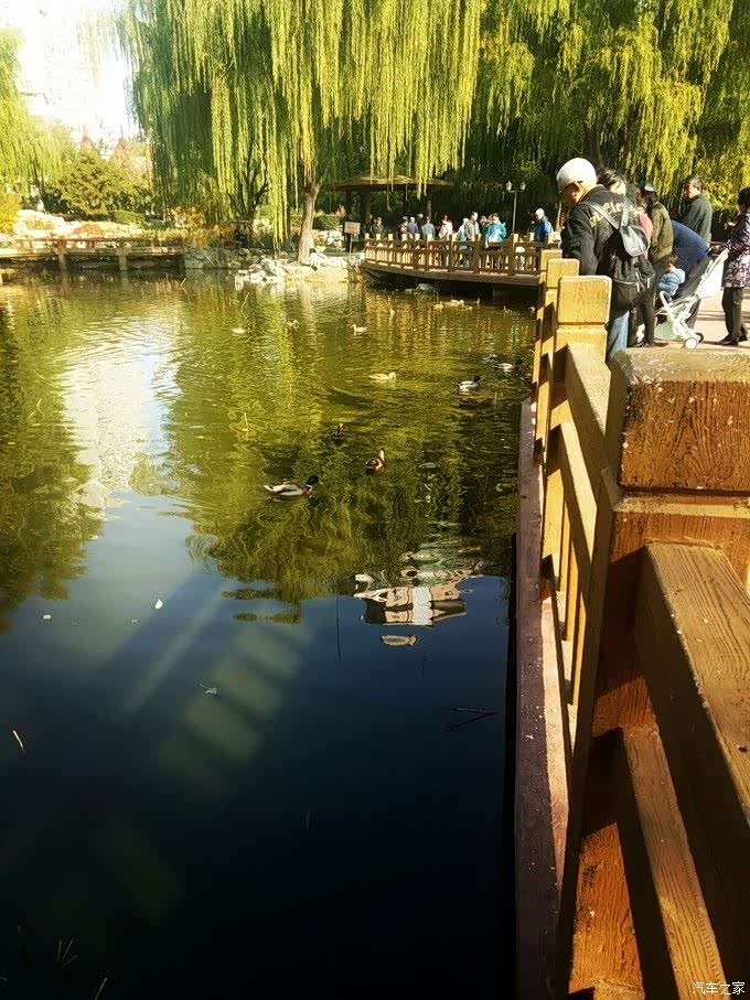 桥上,不少人在这里看水里的鸭子。