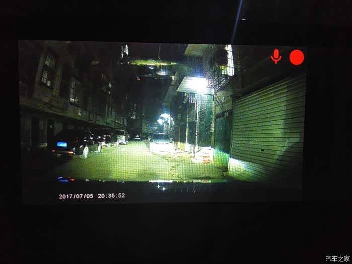 晚上的行车记录效果,和倒车比起来差多了。