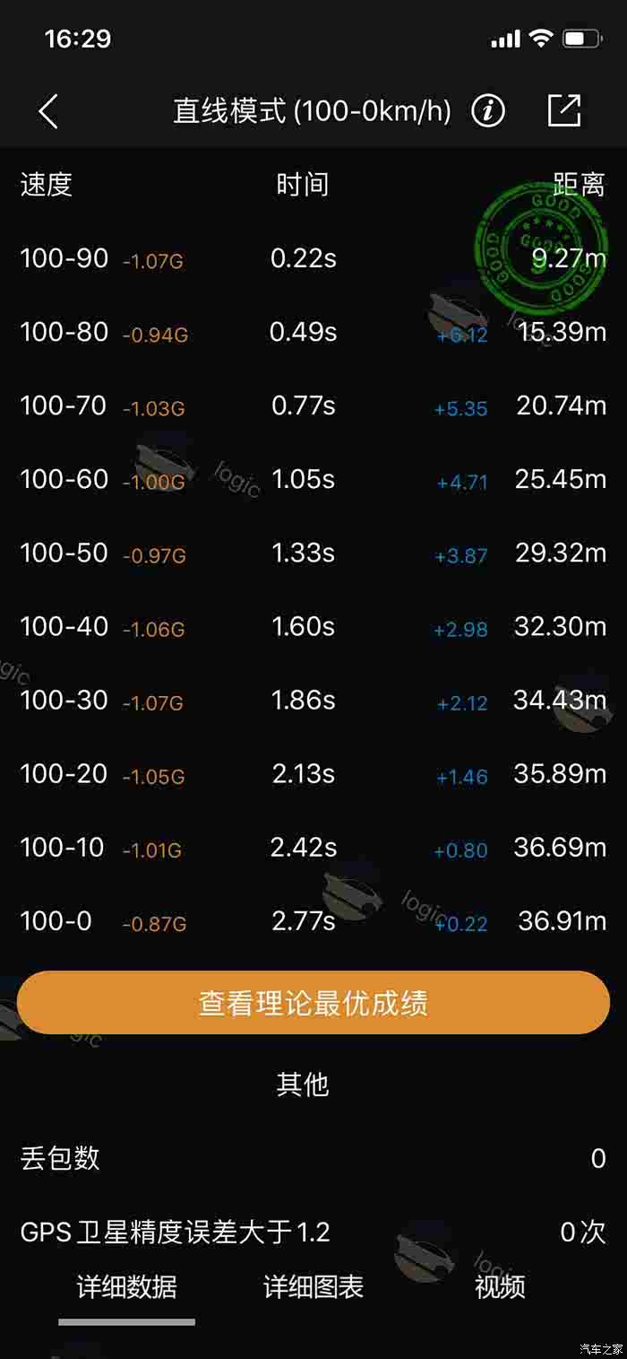 换过轮胎之后的刹车距离大大缩短,据说原厂轮胎刹车距离要43米