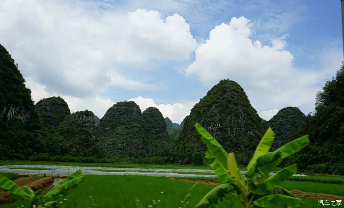 接近万峰林景区,在车上就可以看到连绵不断、傲然屹立的峰林了。