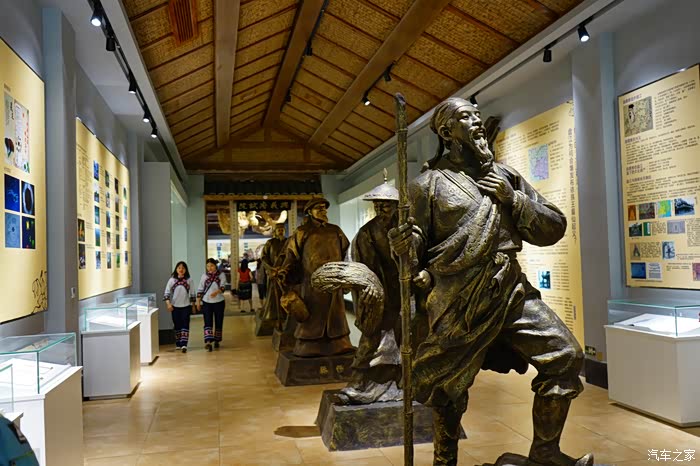观光车停在了一个民族文化源展览馆前,想参观的游客由讲解员带领进入。整个场馆呈U字型,规模不大却精致有序,里面陈列着布依族苗族相关的历史文物,也有一些当地节日及风俗的介绍,让大家能更多的认识黔西南。