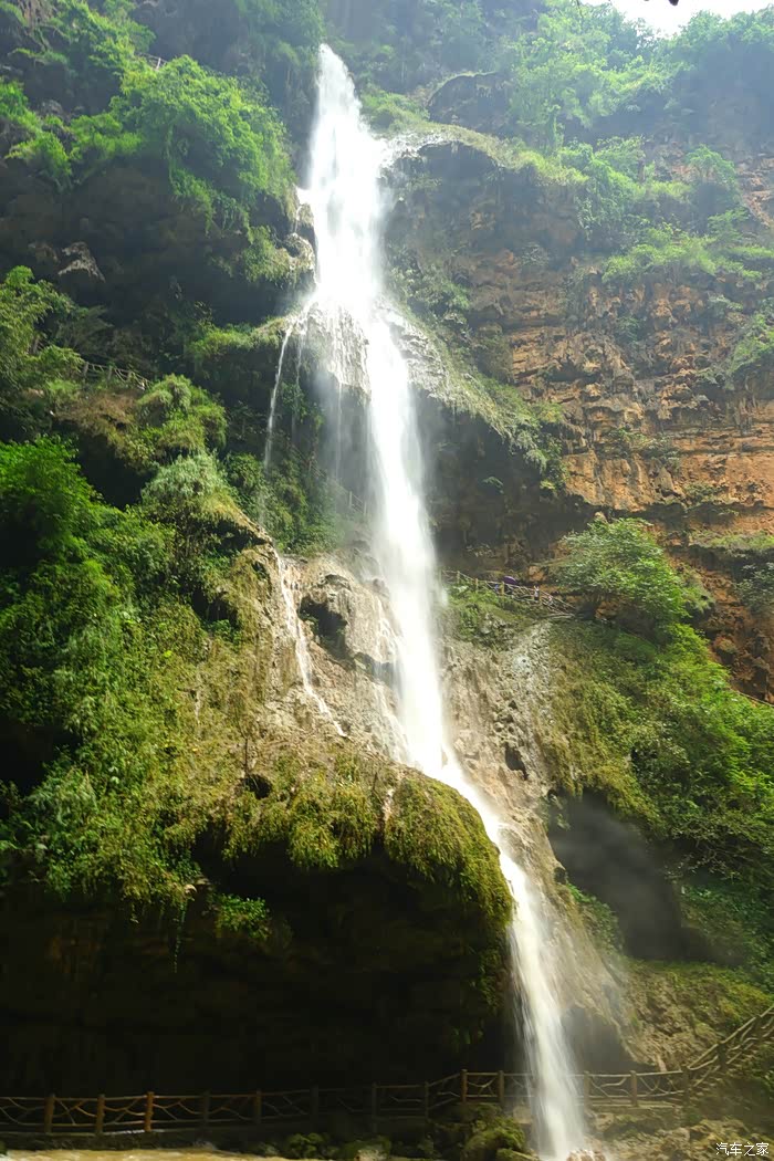 飞流直下三千尺,疑是银练挂绿川,“万马蹦腾”大瀑布高176米,是景区内最大的瀑布。巨大的冲击声,振耳欲聋,真如万马奔腾。水雾袅袅,飘溅至身,又有几分仙境。