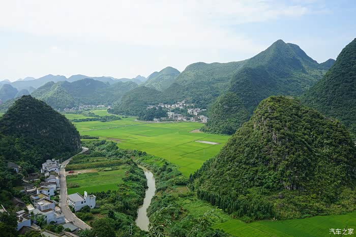 蜿蜒流淌的纳灰河好似一条飘彩玉带镶嵌在万峰林的万亩大坝之上,形成了人们耕作、居住、生活的“绿洲”,这在岩溶区被称之为坡立谷。