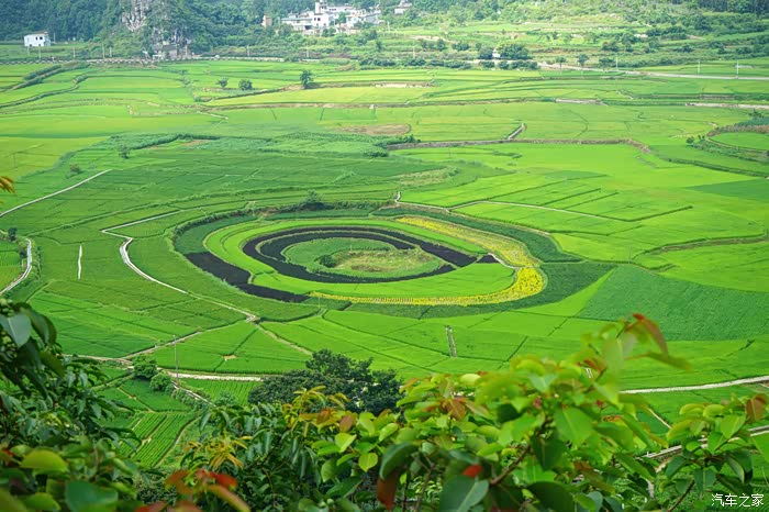 八卦田,也是万峰林的精华景点。她是典型的碟形漏斗,是在地下河局部坍塌和地表水溶蚀作用下形成的。平卧在纳灰寨农田中央的八卦田,造型神奇迷离,如神匠打造,层叠有序。农田耕地以漏斗为中心,弧形展布,构成了奇异的“八卦”图案。
