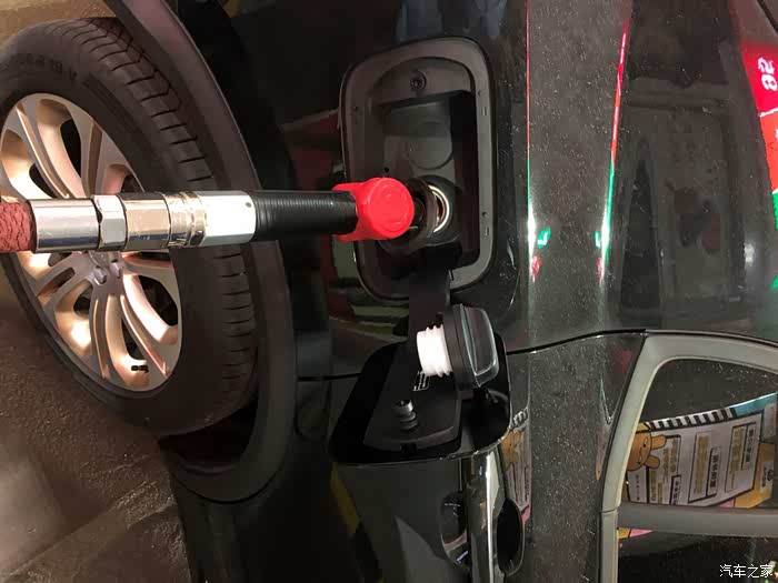昨夜洗车前,出去溜一圈,加满油。油箱帽儿,可以这样卡在油箱盖上。