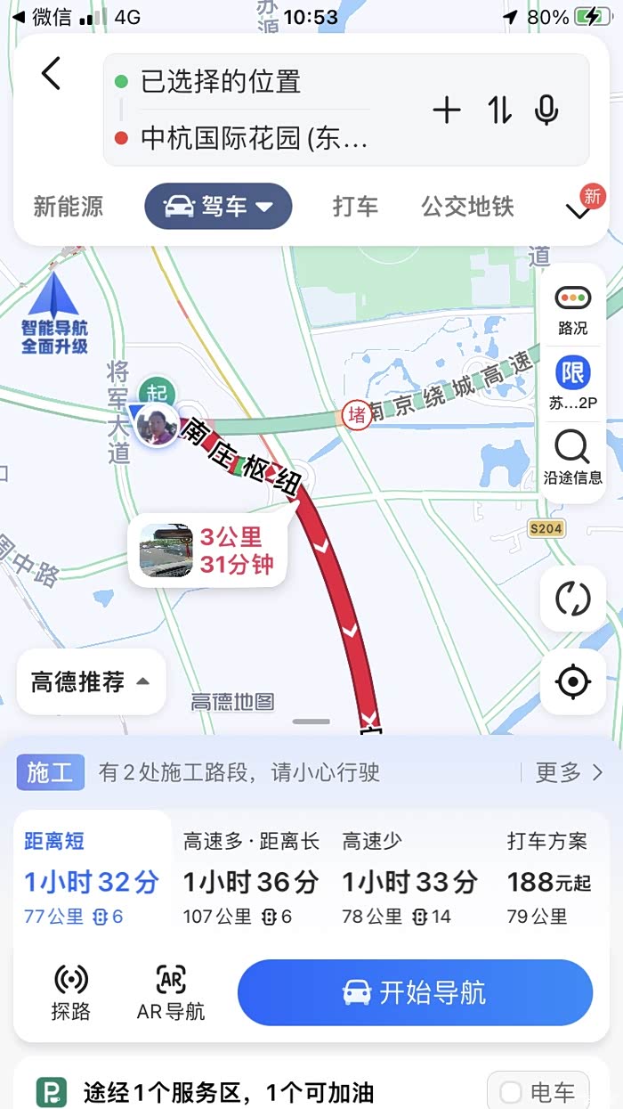 分享一下ID3跑小长途的体验。虽然疫情不能出市,不过好在南京还比较大。5月2日应邀去高淳的朋友家玩,从浦口出发,导航显示120公里左右。刚好ID3买回来还没跑过长途,上过高速,感觉电耗在15左右。这次刚好试一试。