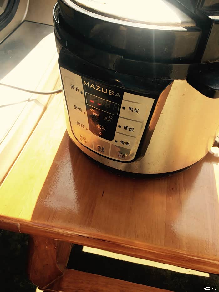 大概10分钟,饭已煮熟。鉴于这次的试用,五菱车在加装大容量电瓶并且怠速状态下使用逆变器是可行的。有时间再试用电热水壶、电磁炉。但愿有好消息跟大家分享了。