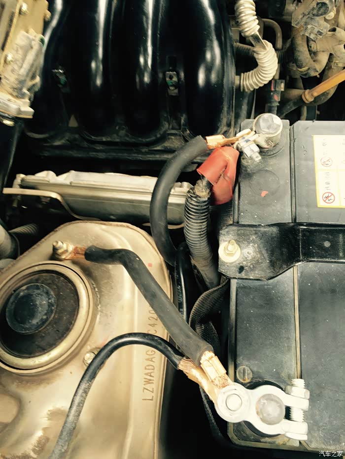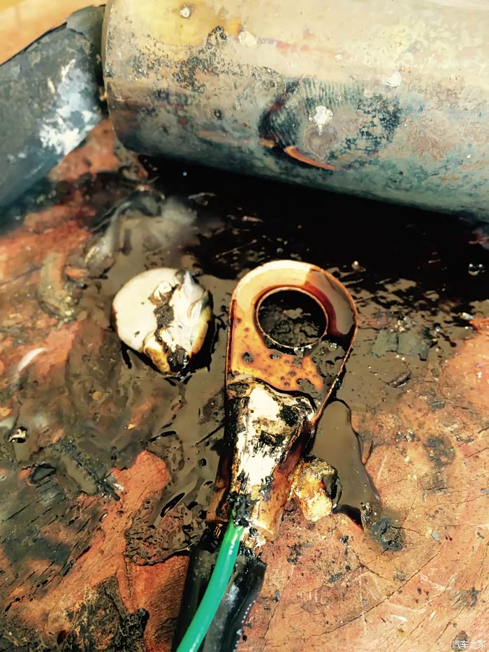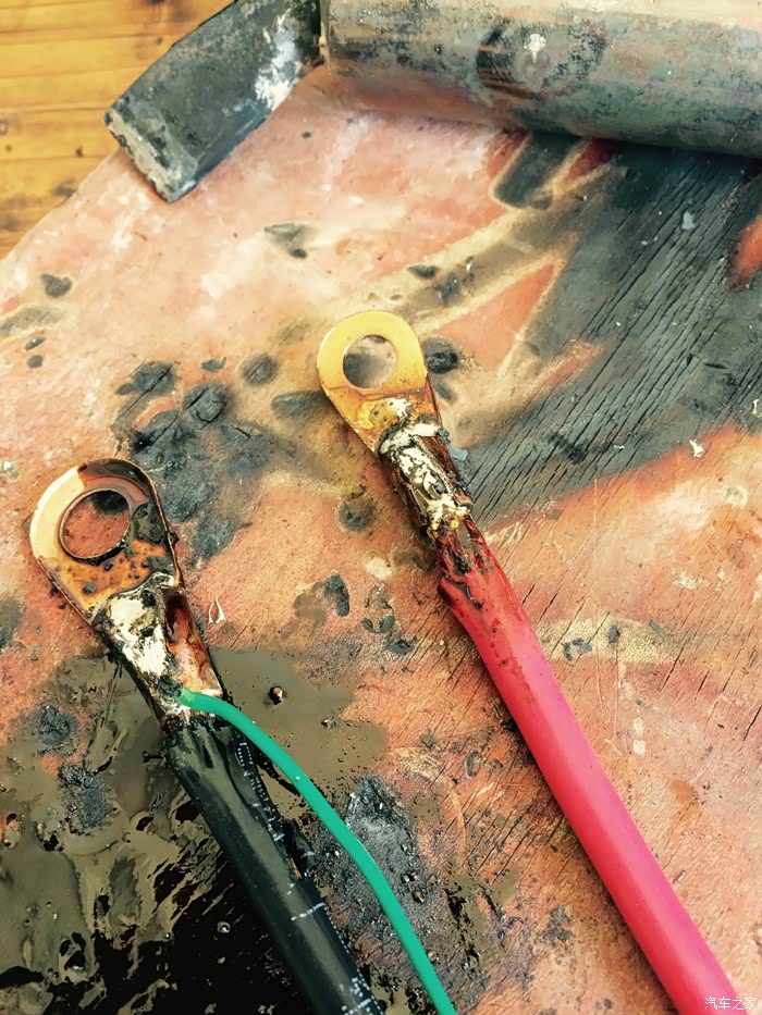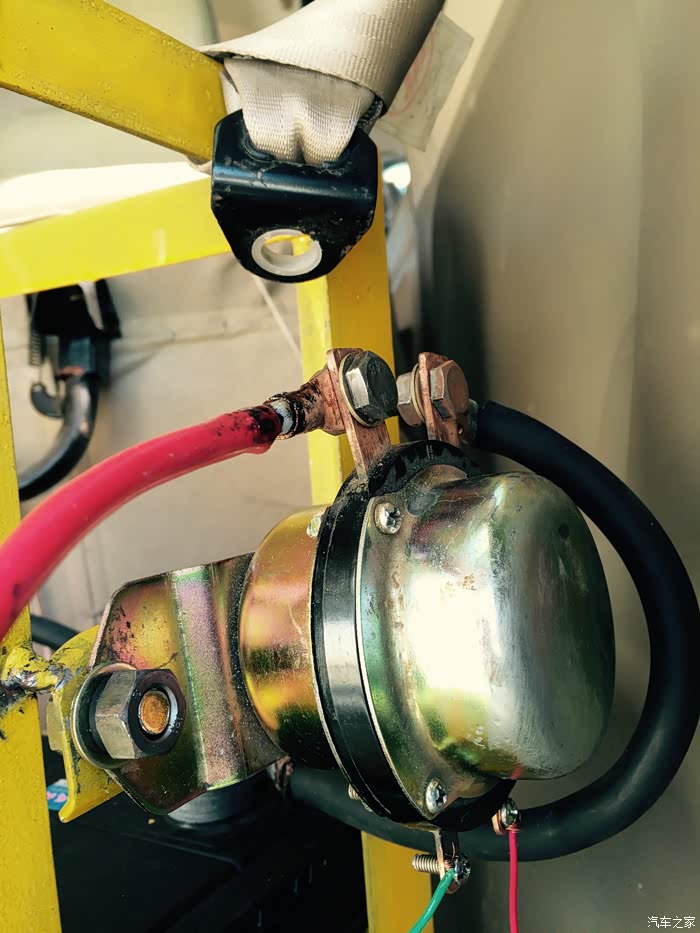 前期准备工作,串接优质35平方纯铜电缆,负极接在最近的座椅脚,并使之良好接地。然而正极走线是个比较麻烦的问题,由于副驾前面没有发现有预留的孔,因此将线延边至中门附近的空调管往下面穿,再延空调管并接到原车电瓶正极(注意尽量离开汽油管),期间固定电缆线是必须的了