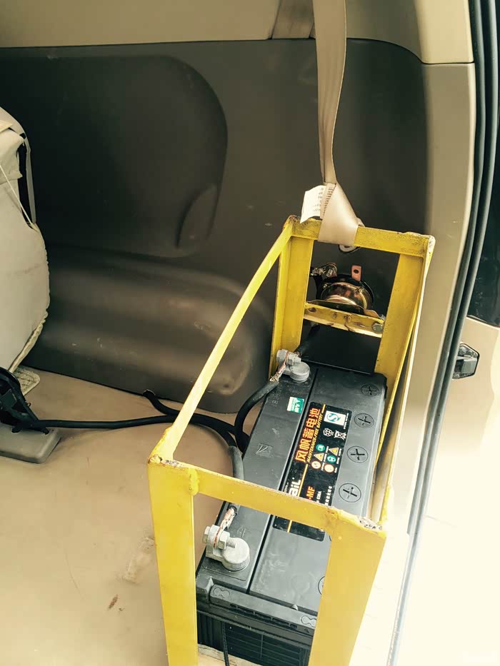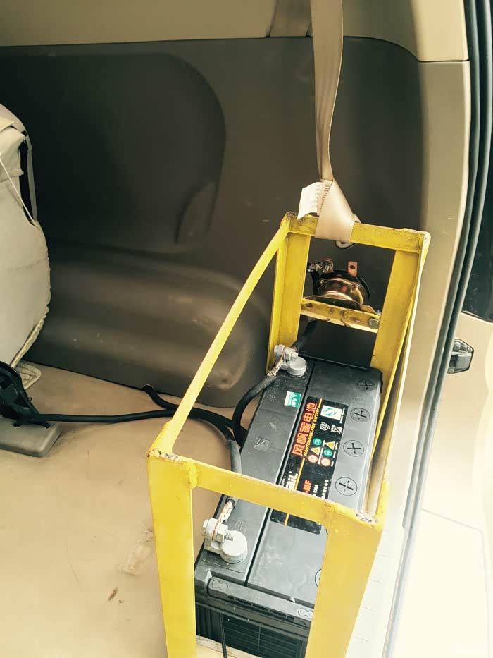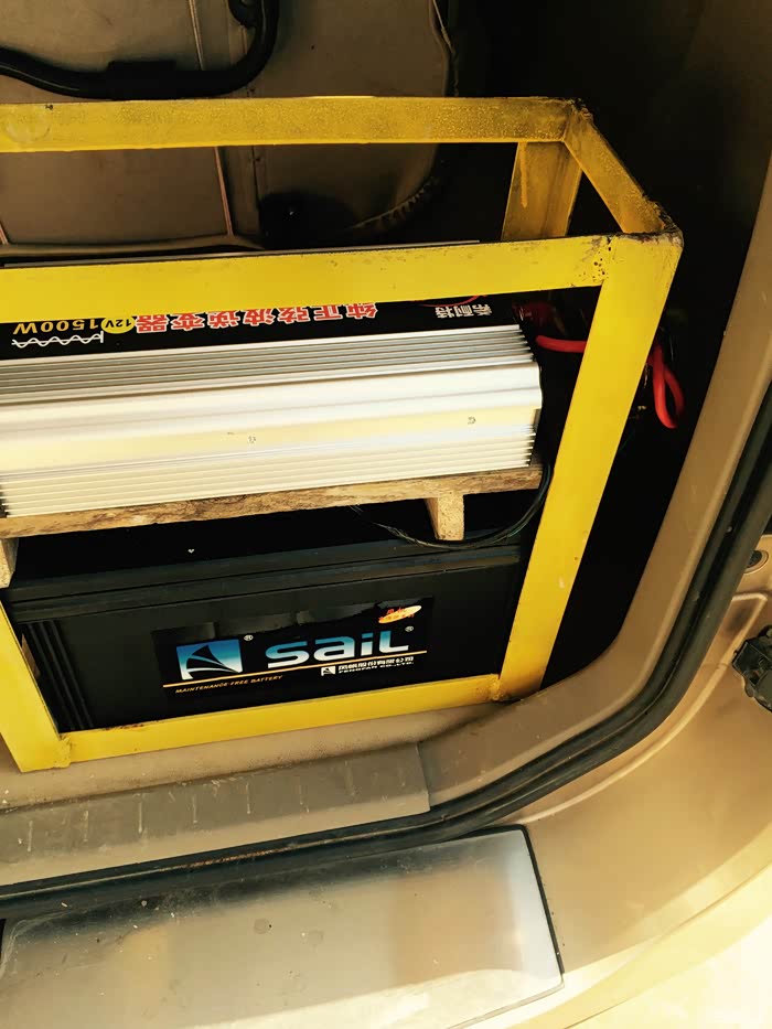 加装的12V100AH风帆蓄电池。加装的蓄电池的方案是跟原车的蓄电池并接,使之充放电同时进行