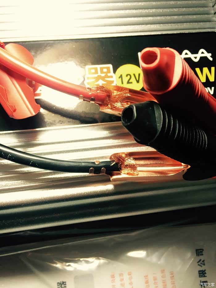 将逆变器由木板隔离固定于电瓶的上方。由于逆变器的外壳接地,故不可碰触电源正极