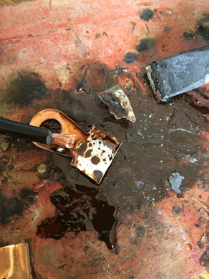 果断地将线夹弃之不用。200W电烙铁上阵、线耳、上锡