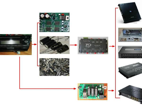 第一,不打算加功放的话,在机内解决---把主滤波电容换掉,使用几个感抗较低的1000uf到2200uf的音响专用电容并联,再增加一个104的CBB电容,这样话又能做大水塘又能提高高频响应,拆掉原功放块,把电源线和喇叭线刮开搪上焊锡,再装上一个TDA7850功放块上去,光这样音质的提升都会比较大了。如果在TEF6638的音控输入和输出的端接上专业的缓冲板的话,那音质的提升是非常可观的。 第二,要加装功放和换喇叭的情况下,那么在第一个改进方法的基础上,加一个专业的前置放大器,这个可以达到专业CD的水准,这个是我们大力推荐的。