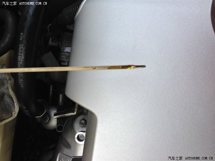 回家喝咖啡,半小时之后查看油表尺,刚刚在上下线中间