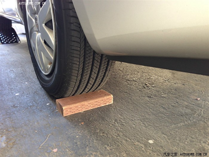 后轮用木头塞住防止后溜