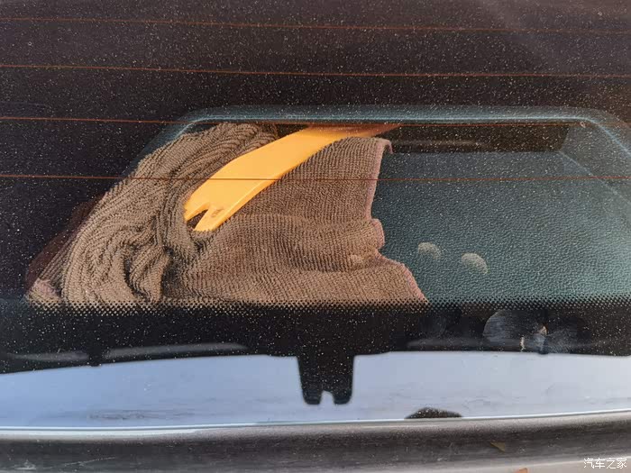 毛巾塞进去时,尽量单层进入,不要折叠毛巾,因为越靠近后面里后挡风玻璃越近,毛巾厚了的话擦不到边缘。