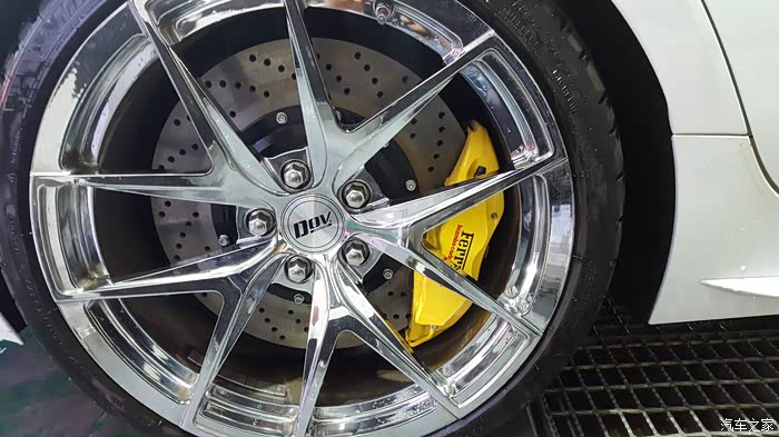 这个角度尤其显刹车,特别是后面的大4。。。法拉利特色,卡钳都是斜的,