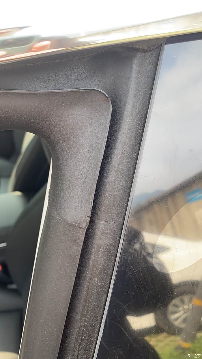交接时,发现B柱的橡胶开裂,哈,确认是特斯拉正品无疑了!做工确实是特斯拉软肋!