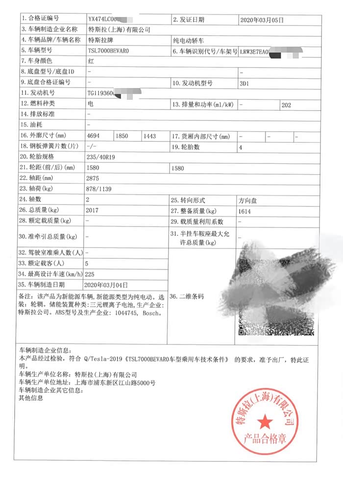 坐标城市福州,1月4号凌晨下的单,3月6号接通知,说排到车了,向交付要合格证,交付9号一早给了合格证,上网一查松下3.0头奖,人生赢家🤔🤔🤔。如何用合格证确认电池品牌下次有机会再另开一篇作业《用合格证查询本车公告》,100%准确的那种🤪🤪🤪,要是不准,你提车后,我原价收。如果单从合格证上的 特斯拉 还是 特斯拉(上海)来判断电池厂家还是有风险的,不建议!
