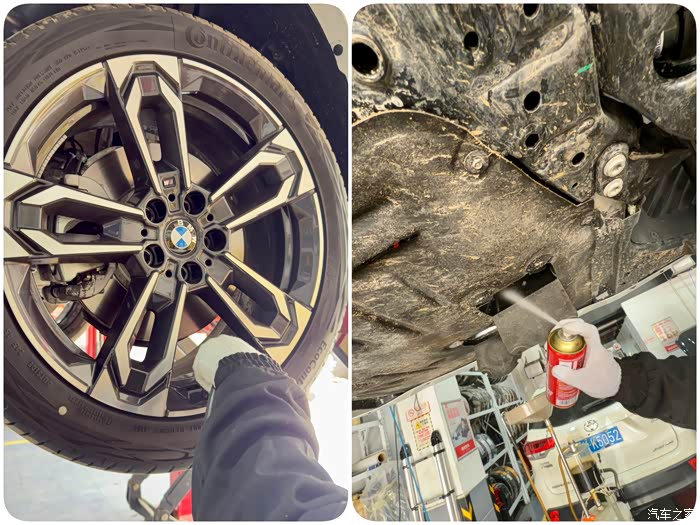 虽然是大新车,但常规检查项还是要做的,比如调整胎压对于现在这忽冷忽热的天气就挺有必要的,再就是喷除锈剂也算常规项目。