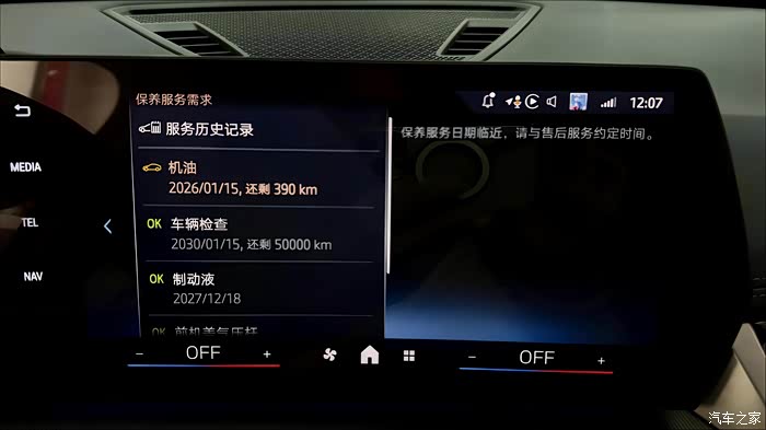 重置完车机系统,保养时间自动后延一年,公里数重置后还剩1万2千公里。