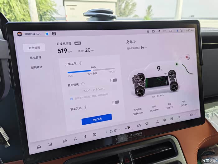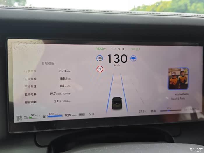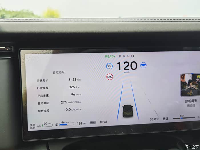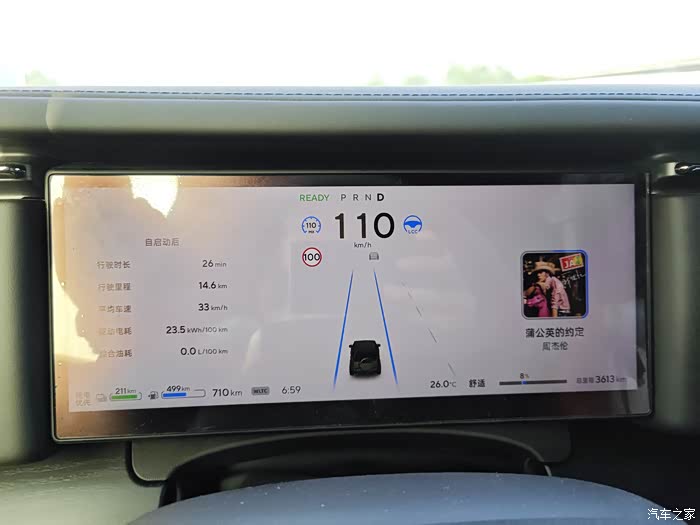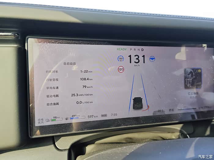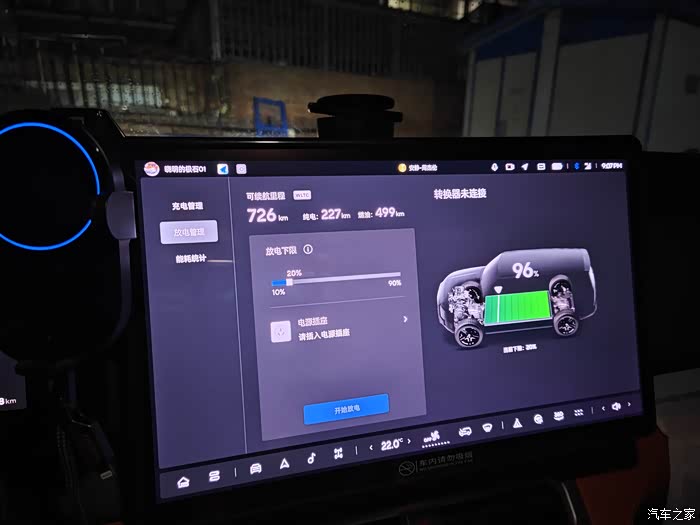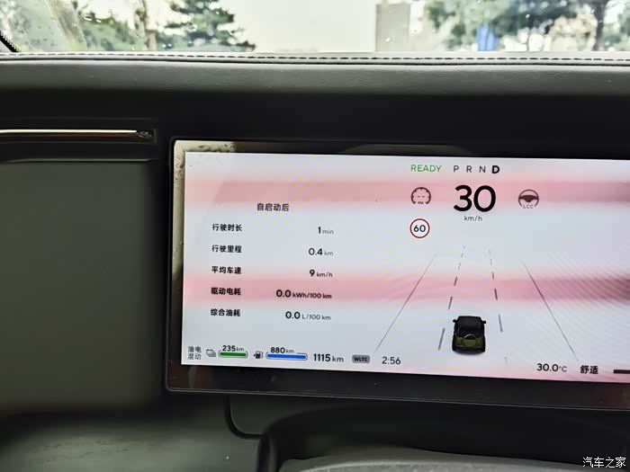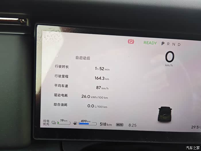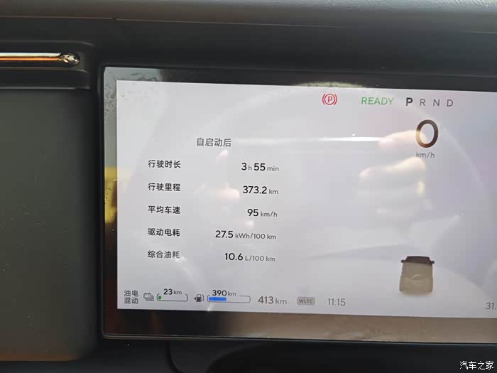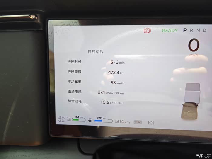 头一天在公司将电充满,到家还有96%的电量,WLTC显示纯电续航还有227km,燃油499km,第二天我们将小计里程清零,准备出发了。
