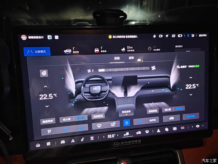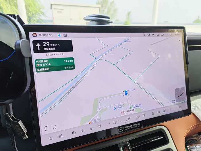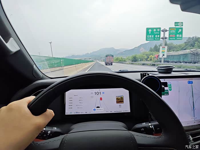 因为不需要去服务区充电,也没有人中途上厕所,回北京全程95%都用的自动驾驶,一路卡着限速跑,电量在低于60km的时候启动增程器,开始烧油。