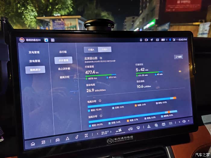 到家忘记拍小计里程统计了,晚上从外面吃完饭回家才想起来,好在相差不多,可以忽略这点差值,从北京回山西,共计行驶477.4km,其中纯电407.8km,因为没有充电的位置,被迫使用燃油69.6km,电耗26.9,油耗10.6,不知道大家对这个成绩怎么,反正我觉得一般般,主要充电比较费时间,所以一路油门踩得比较猛,以此来追赶整体行程的时间,能耗还是有点高的。