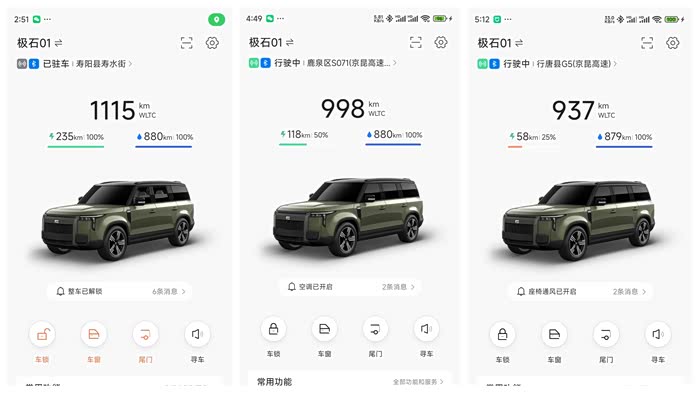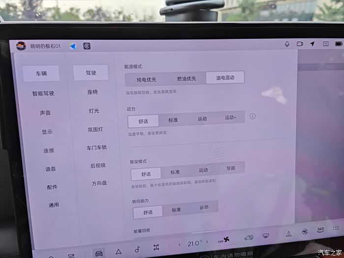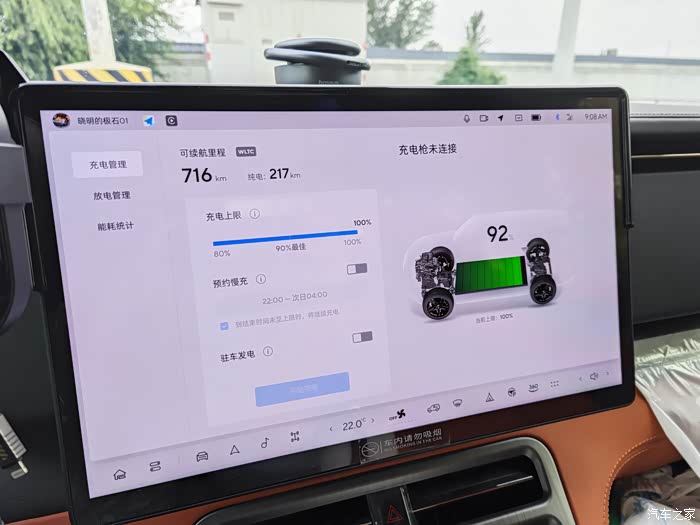 在咨询极石车主的官方专属管家后,决定从山西回北京使用油电混动模式,出发前将电量充满,油量加满,WLTC显示综合里程1115km,其中电235km,油880km,山西回北京是坐了5个座(包括安全座椅),然后放倒了一个三排座位和后备箱合起来塞满了东西。