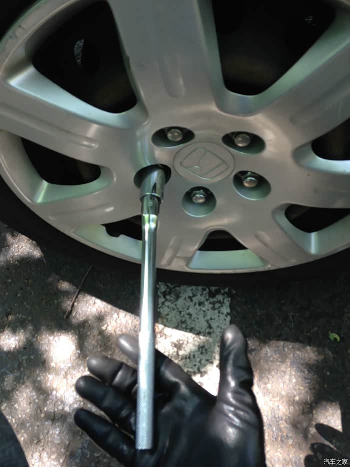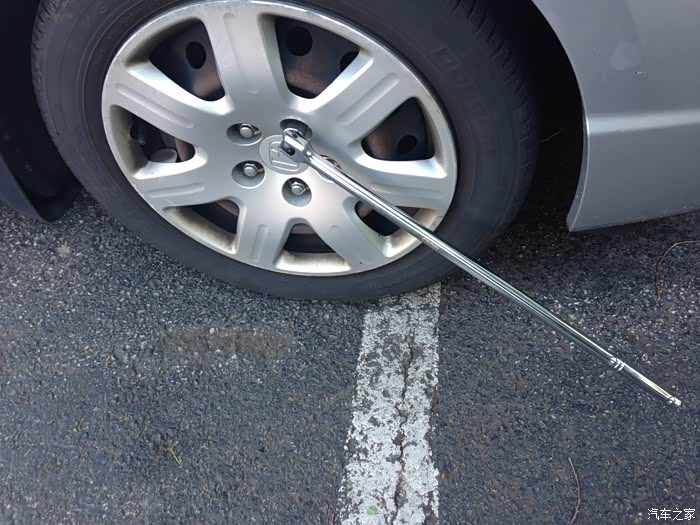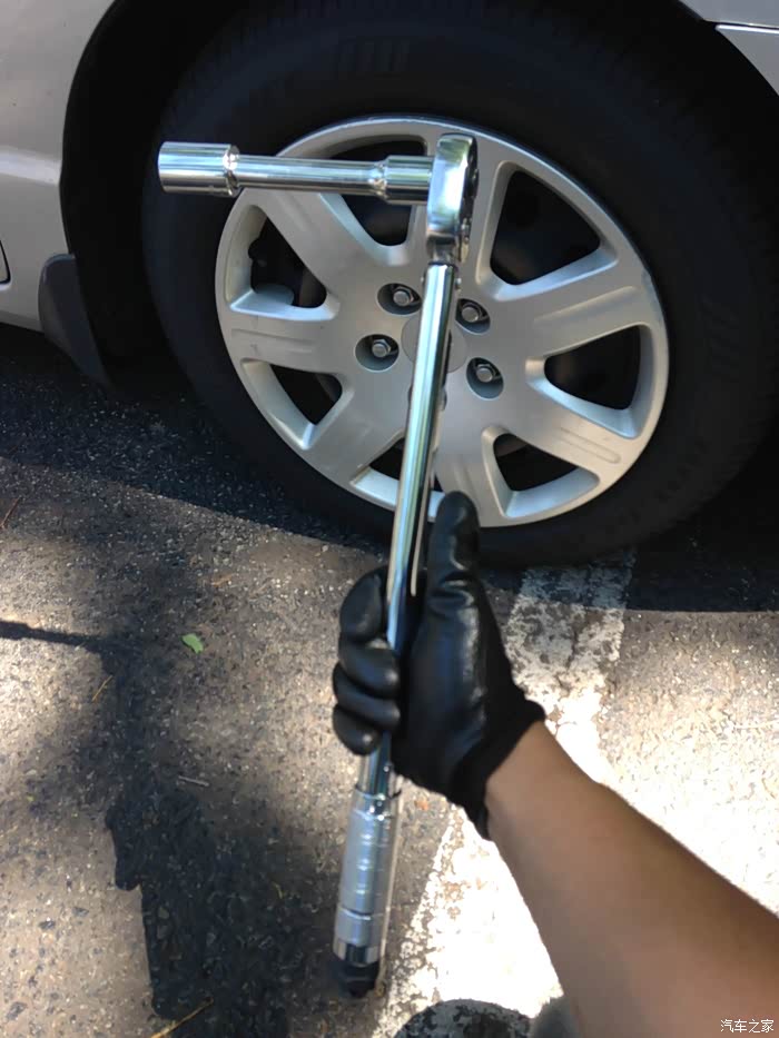 因为一会儿要轮换轮胎。我就现在地上时候把轮胎拧松。