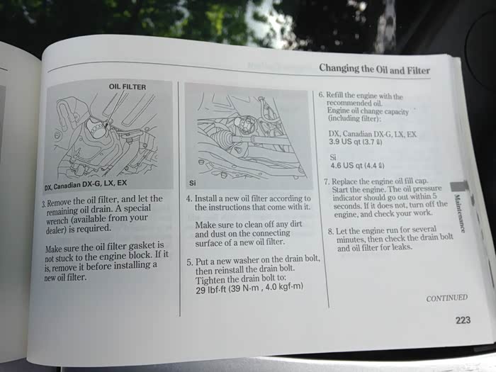 家里的美版八代思域Coupe,是2006年的老车了,现在已经跑了9万多英里,约合15万公里。这两年都是我自己动手做维修保养。自己换了全车油水,换了节温器,还有些灯泡,雨刷之类的小东西。现在车子机械状态还不错,两次换油间,机油没大有消耗。之前车子基本上都是街边快修店保养,一般也就是连工带料二十几到三十美元的价钱。去年开始,我自己动手换机油,其实自己动手也不算便宜,但是同样的价钱,外面店里用的矿物机油和杂牌机滤。我自己动手的话,会买全合成机油,可以使用原厂机滤或者买高档品牌的机滤,自己换油还可以多放一会儿,把油放的更干净。拧放油螺丝也不会像外面修理店那么紧,更不会把机油加多。在上次换过机油之后已经跑了6000英里,合9600公里,时间是8个月了。保养提示灯亮起来了,提示该换机油啦。家里已经在美孚上次优惠时候屯好了机油。本想买也买美孚的EP机滤,看了看没啥优惠,就不买了。老老实实的用本田经销商的原厂机滤吧。机滤是从一个本田经销商的ebay店买的。二十美元三个,还包邮,两天就寄到了。应该跟国内差不多价吧。 每个机滤还送放油螺丝垫片,省得再去单独买垫片了。本地的本田经销商的原厂机滤要9刀多,网购的才6刀多一个,还不用交消费税。至于原厂机滤质量如何,我知道美国的原厂机滤是有不同代工商的,我买的这种是Honeywell代工的,听说另一带工厂商的能更好些,不过不大好买。我认为只要是本田原厂机滤,代工厂商无所谓,他们的产品肯定都满足本田的官方要求,不然就是砸本田自己的牌子了。虽然比不上那些高端品牌的,美孚EP,KN,紫皇冠之类的机滤。不过我们这车也就是正常上班买菜,也不激烈驾驶,没有什么可担忧的。