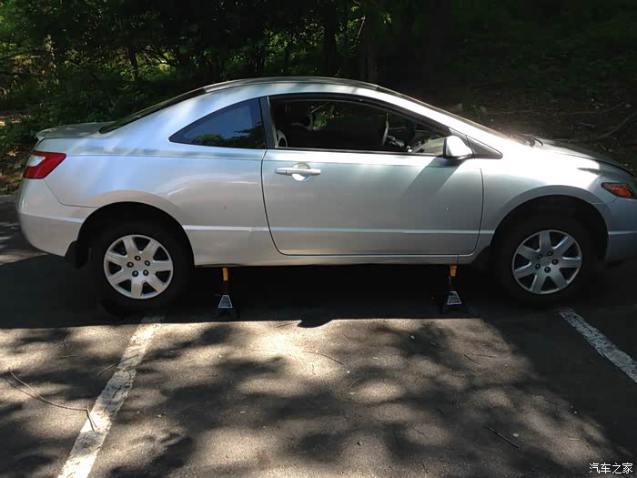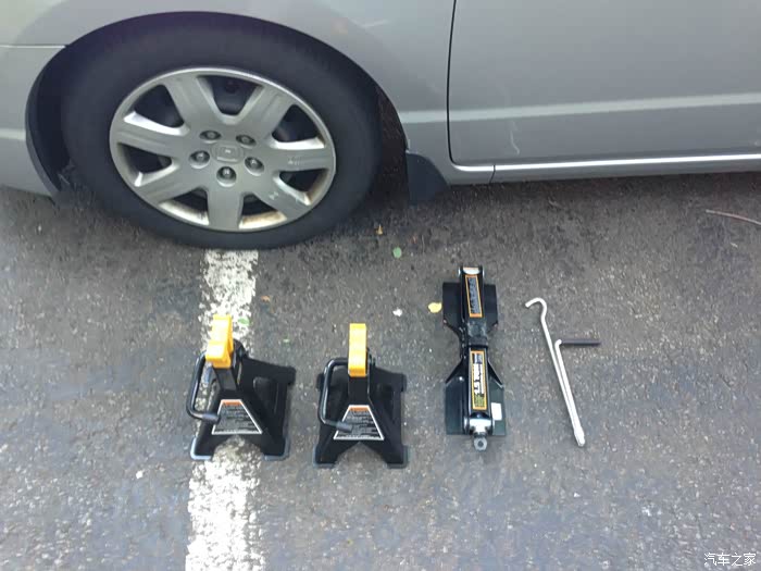 就这样。车子就稳稳撑住了。