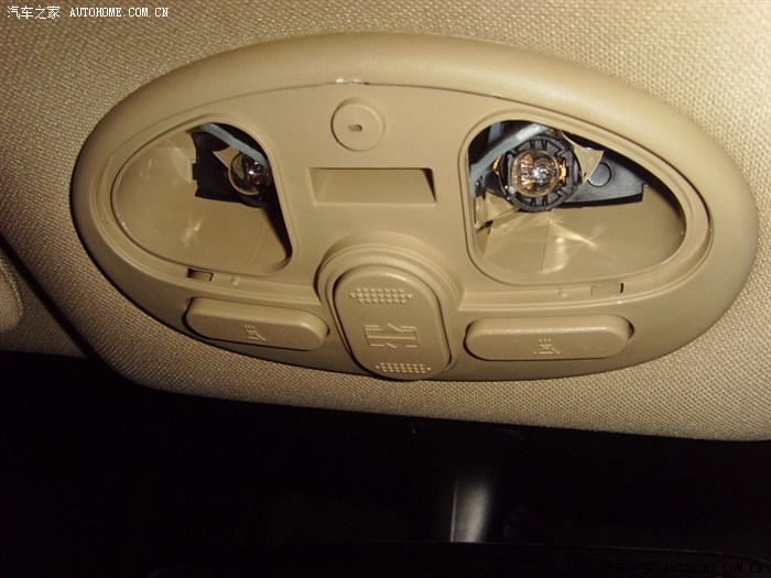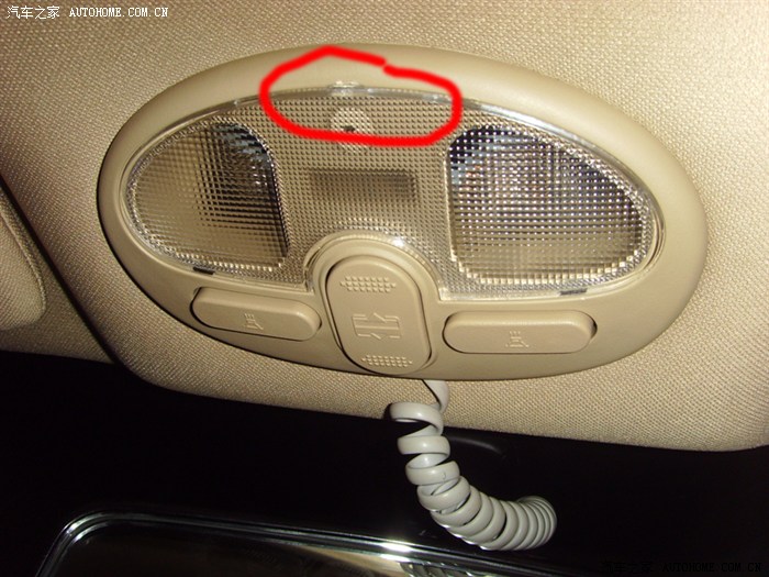 在网上找了别人的方法参考了一下,从上面用小起子撬开,结果发现不行啊,把顶灯都翘出伤痕,注意到上图的上部没有,新车啊,心痛!仔细观察,最后发现用翘两个灯按钮上面的口子,轻轻一撬,塑料玻璃很快就掉了下来,看样子有些方法不能照搬。: