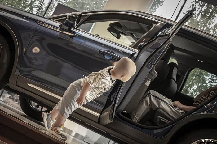 我说大兄弟怎样,意外不意外,惊喜不惊喜。不要趴在车窗上了,上车来试试。看看这款冒险家作为林肯最入门的紧凑型SUV,是怎样的一种入门即豪华。在打开车门的一瞬间,大兄弟被交响乐安全提示音给”吓“到了。哈哈!