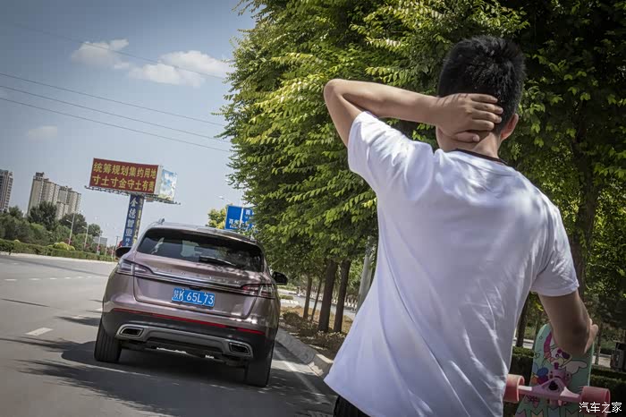 哎哎哎!放下手机我们去试车了。哥给你搞到真货了,同事女友的林肯车被我借来了。车身虽被贴膜,有种粉粉的感觉,不过尾部设计饱满层次感极强,连贯式尾灯组合和下部双边两出的排气布局以及林肯金属英文车标的镶嵌,依旧散发着阳刚之气。