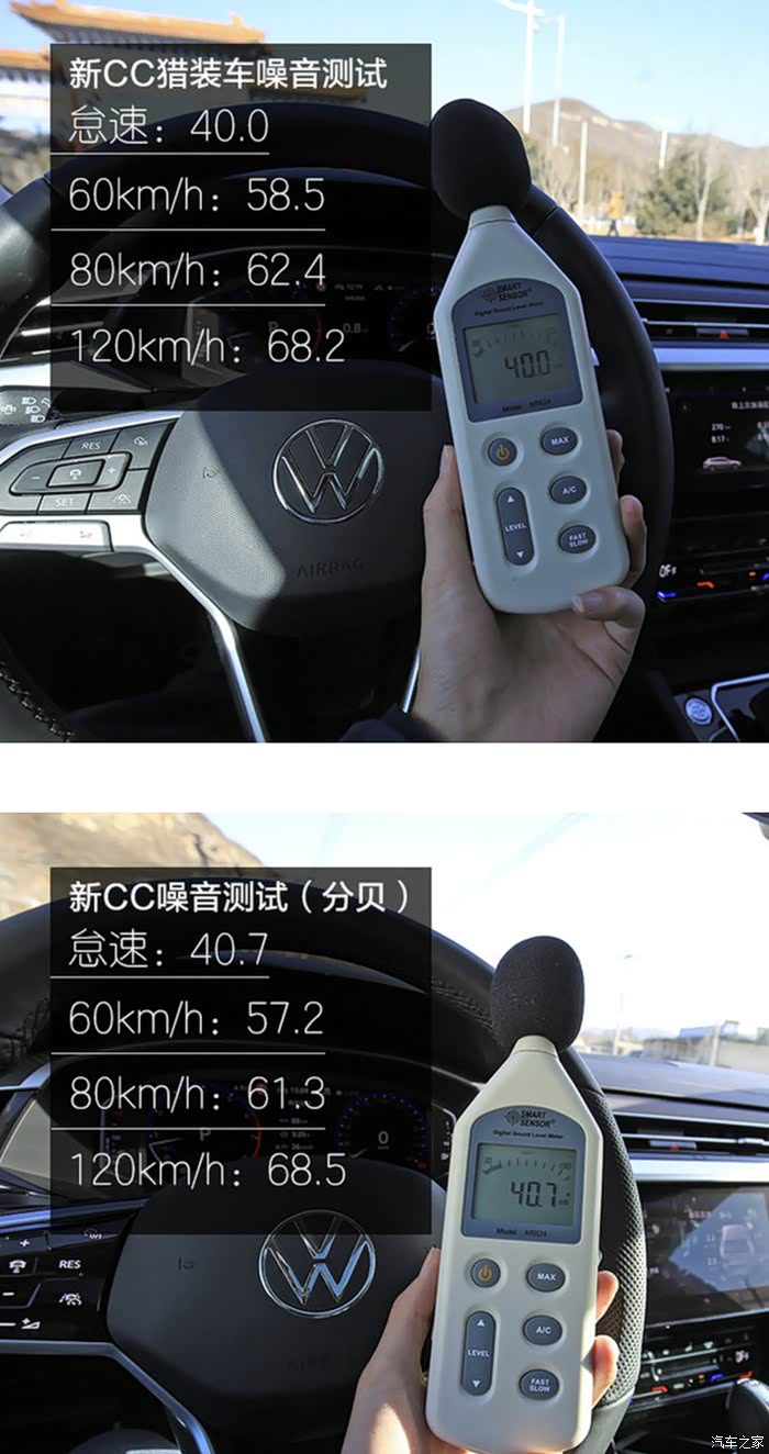 下面是其他常见无框车门车辆的噪音测试值: