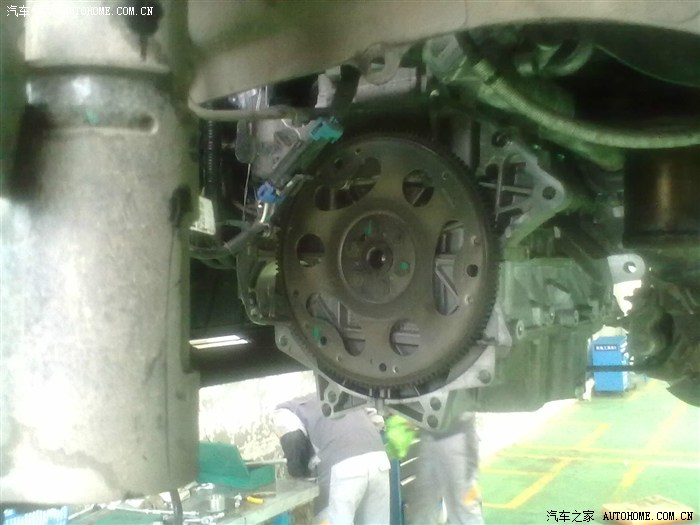 10月28号去保养当车子慢慢升起的时候我就抓紧去看看叫揪心的变速箱,在看到后心是拔凉拔凉的我也中奖了,4S人员看后非常爽快地说马上订货说周四给我打电话下面图片就是周五维修拍的手机不好凑活着看吧。