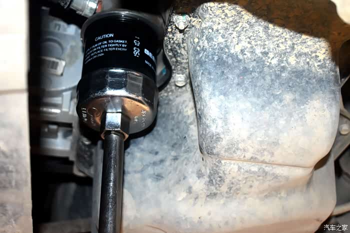 拆下旧的机油滤芯,等废机油滤干净,在滤的过程中进行下一步工作