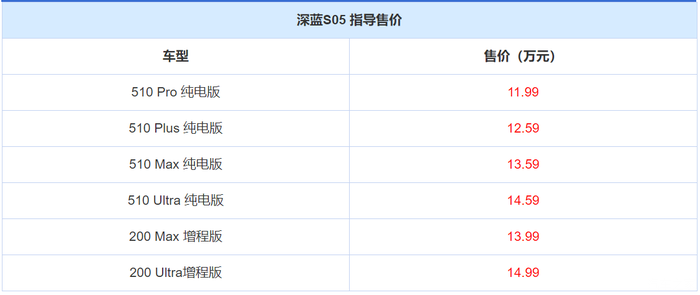 S05车型和售价