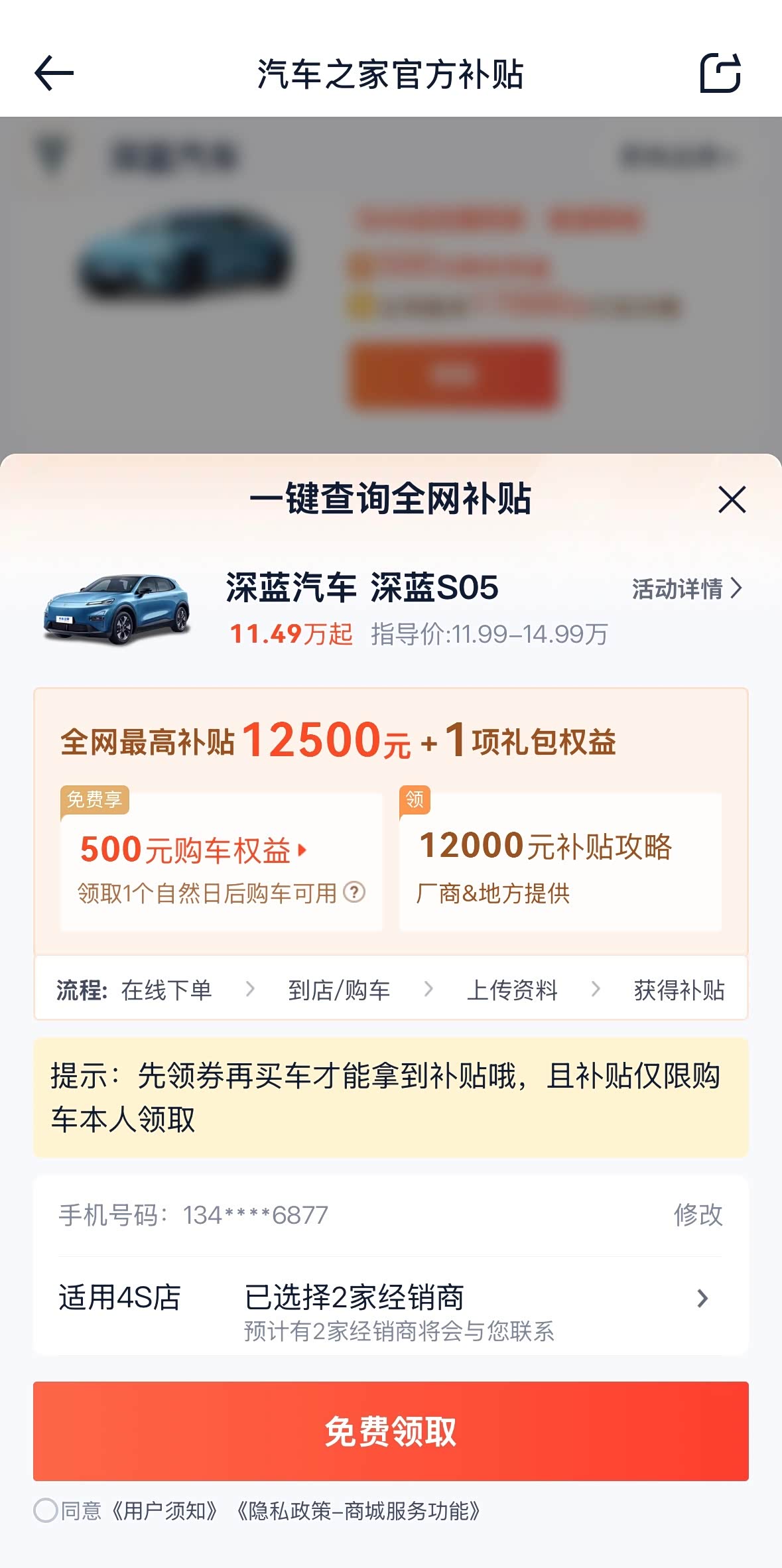 方法1:点击下方链接进入超级补贴活动——输入想要购买的车型点击领取;