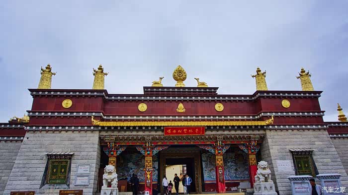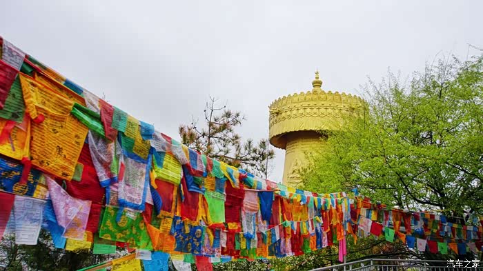 龟山顶上有载入吉尼斯世界纪录的世界最大转经筒,要三个人一起用力才能转动。
