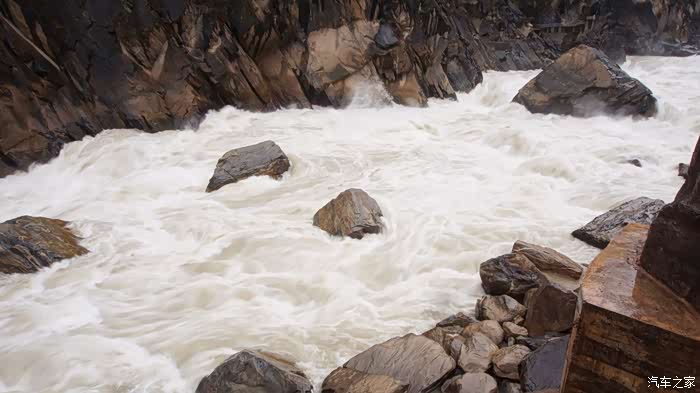 第一次面对虎跳峡,便会为眼前的景观,对自然生出一种敬畏之感。川流不急的水拍打在岩石上,给人一种来势汹汹的气势。