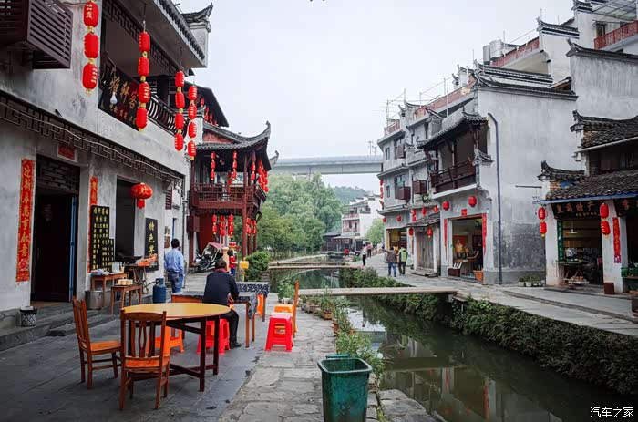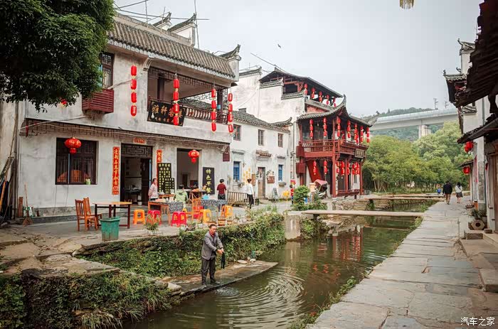 一条川流不息的小河将李坑分成东西两个部分,小河两旁的房屋上都挂满了红灯笼,将这个小小的村落照的通火明亮。