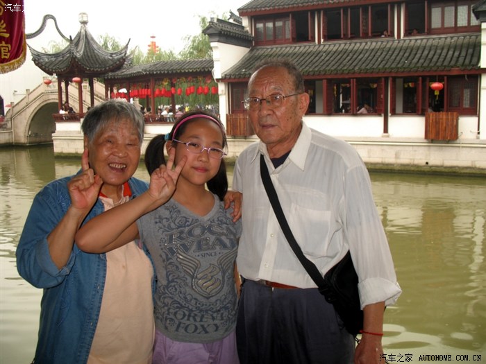 上了卢浦大桥,真的是一马平川哦,浦东的路就是好,跑得飞快,半个小时就到了召楼,在外面的停车场停好,老爸急着付了停车费--10块!趁着没什么雨,给老爸老妈拍了照片