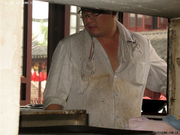 大师傅在一丝不苟的工作中(吃饱喝足后我透过这个小窗和大师傅聊了几句,对我的夸奖大师傅开心的说谢谢,我还敬了大师傅一支烟)
