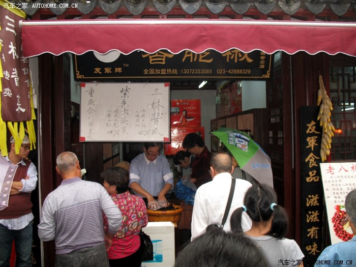 进入“古镇”,生意头脑不错,安排人们从这个卖各种各样传统食品的商店里穿行进入这个人造的“古镇”