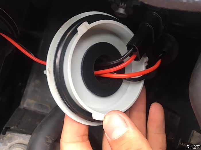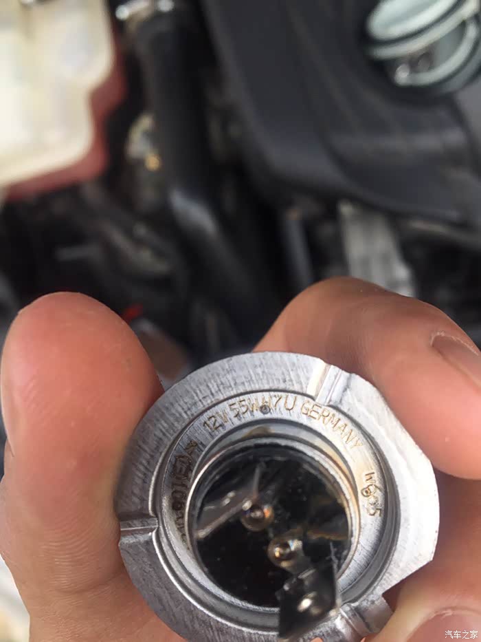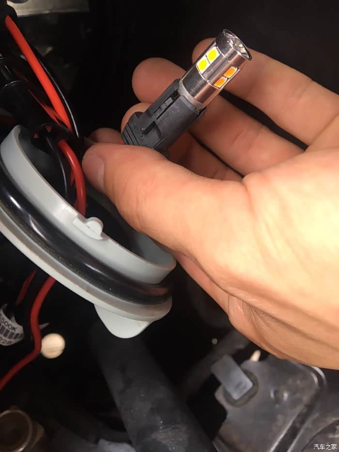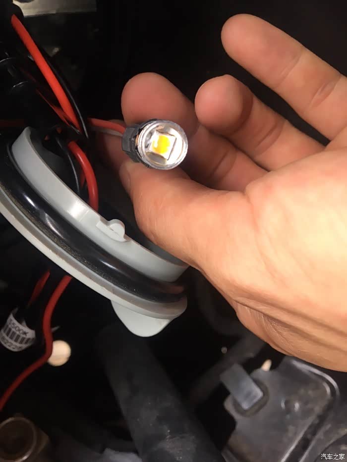 把原车灯泡拆下来,有个扣子,往下一按就下来了,拆卸的时候记得灯泡安装的方向,