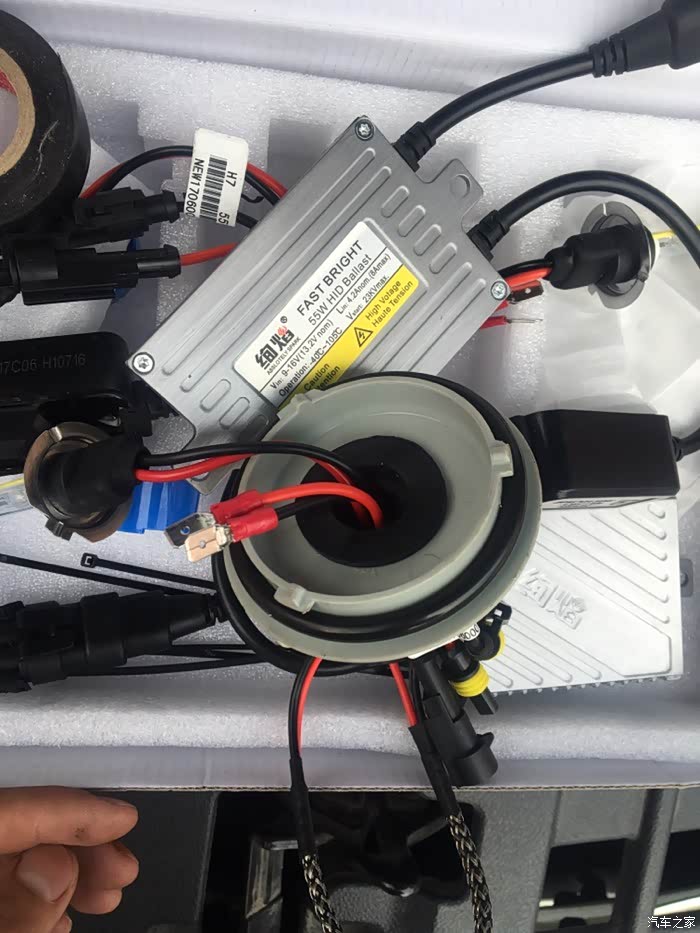 某宝买的快启安定器,近光5500k白光略微带黄 适应性最好,兼具穿透力强,亮度好,晴天和雨雾天均适合,强烈推荐。