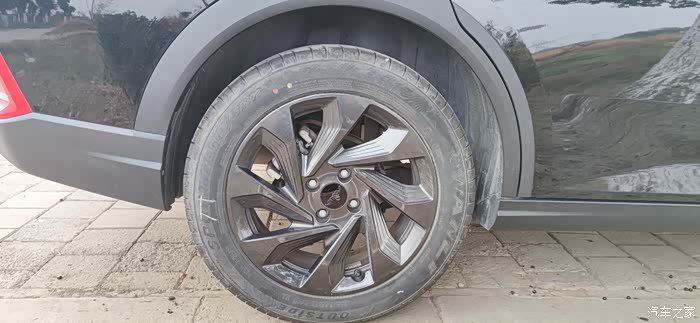 大黑轮毂,本身中间的标志是亮银色的,不知道啥原因,全黑了,好在轮毂也是黑的,这样显得更搭配了!